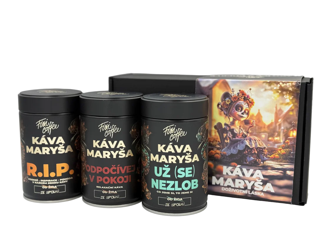 Oslavte Halloween se sadou třech káv Maryša od české pražírny Fixi Coffee anebo ji zvolte jako ten pravý dárek pro každého, kdo si ujíždí na černém humoru.